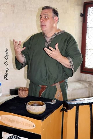 Venez découvrir la magie ancienne, la divination, la sorcellerie et le son de la harpe dans notre camp. Notre sorcier, Darlone, enchaîne les tours au gré des passages des visiteurs, usant des subterfuges et accessoires de son temps (runes…). Il conte les légendes du passé dans un curieux et malicieux spectacle interactif mêlant magie de proximité, divination et hypnose, Peut-être pourrez vous aussi écouter les mélodies jouées par Dame Marion à la harpe celtique et voir de plus près la bêteeeeeeeeeeeee. Notre stand peut-êtré également installé en intérieur dans une pièce d'un château. Le stand peut aussi être agrémenté d'une présentation/démonstration des épées à travers les âges avec une version courte du spectacle "Le chant de l'épée" sur le stand au grés des passages des visiteurs, avec une présentation de l'épée à travers les âges